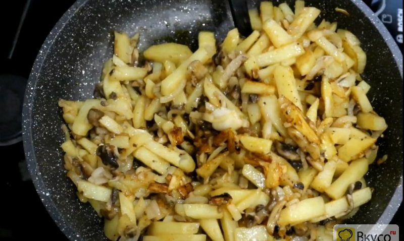 ¡Qué delicioso es! Una receta tan sencilla pero deliciosa de patatas fritas con champiñones. El olor está en toda la casa. ¡Definitivamente lo recomiendo!