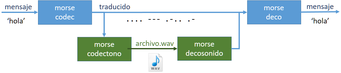 El programa para cambiar un mensaje a su versión morse se simplifica usando la función anterior.