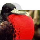 En la estación de celo las fragatas macho hinchan su cuello una enorme bolsa de color rojo.