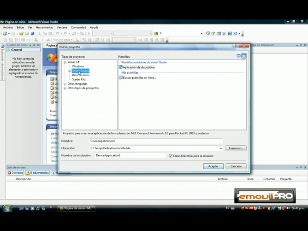 Otra Opción para instalar SQL SERVER COMPACT 4.0 en un Smartphone es atraves de una aplicacion en visual studio, seleccionando la opcion Smart Device.