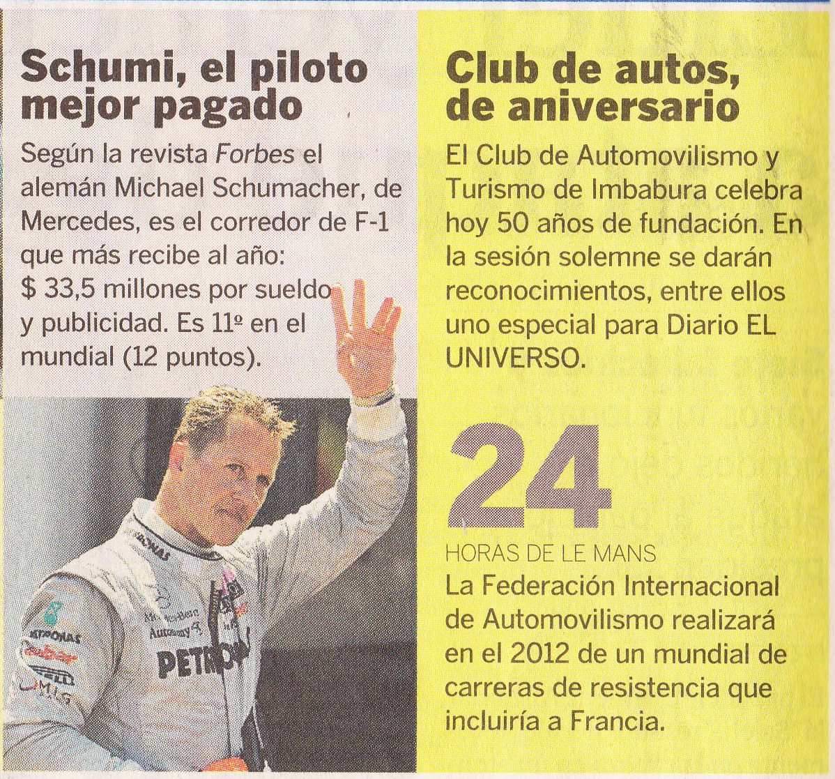 He aquí las novedades sobre los concurrentes de la F1, más información en el Diario El Universo.