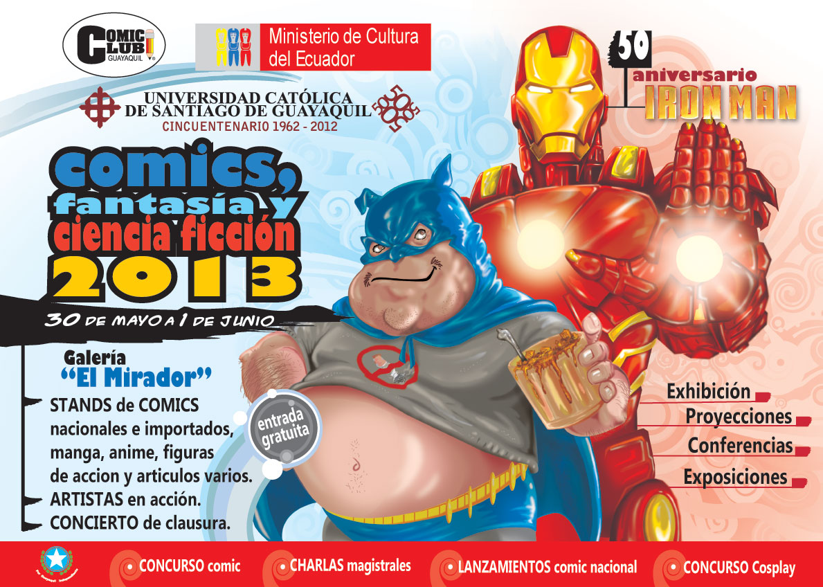El Cómic Club de Guayaquil junto al Ministerio de Cultura del Ecuador y al ICAIM, se enorgullecen en presentar a Uds., el evento Cómics: Fantasía y Ciencia Ficción 2013.. Por tal motivo, los invitamos a visitar la Galería El Mirador del Centro de Difusión Cultural de la Universidad Católica de Guayaquil, del jueves 30 de Mayo al sábado 1 de Junio, de 10h00 a 20h00.