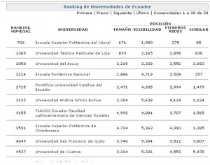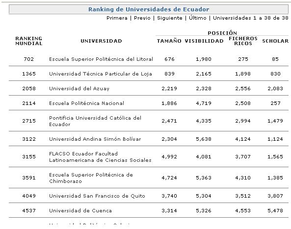 Como se puede ver, la ESPOL lidera el ranking de Universidades en el Ecuador.
