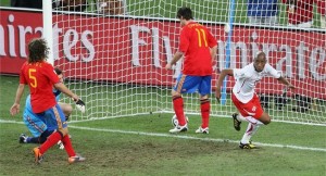 Inglaterra y Estados Unidos repartieron los honores al igualar 1-1 en el debut de ambos en la Copa Mundial de la FIFA Sudáfrica 2010. El encuentro, válido por el Grupo C, se diputó el sábado 12 de junio del 2010 en el estadio Royal Bafokeng de la ciudad de Rustenburgo. Los equipos todavía estaban acomodándose en el campo de juego cuando, a la salida de un lateral, Inglaterra agarró dormida a la defensa rival y armó la jugada del primer gol, que tuvo tres toques rápidos, una gran asistencia de Emile Heskey y una exquisita definición de Steven Gerrard entrando como centrodelantero para anotar. A pesar del baldazo de agua fría, los norteamericanos no perdieron el orden y apelaron a la prolijidad para trasladar el balón hasta el campo inglés. La ventaja le permitió a Inglaterra tirarse unos metros atrás y salir rápido de contra. Casi le da resultado a los 19’, ya que Wayne Rooney dejó a Aaron Lennon prácticamente cara a cara con Tim Howard, pero el volante prefirió enviar un centro que fue cortado a tiempo por un defensor contrario. Los europeos parecían retomar la iniciativa cuando llegó el inesperado empate norteamericano, ya que un disparo de Dempsey, aparentemente fácil para Robert Green, se coló entre las manos del arquero y fue a morir lentamente al fondo de la red. Antes del pitazo final, además, Howard se lució al desviar un disparo franco de Glen Johnson, del otro lado, tan sólo un intento de Donovan desde lejos inquietó a los ingleses, quienes al final debieron resignarse a una igualdad con sabor agridulce.