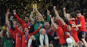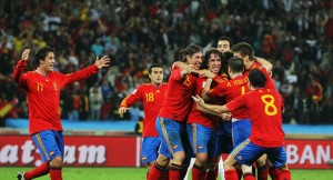España se consagró campeón de la Copa Mundial de la FIFA por primera vez en su historia al vencer 1-0 en tiempo extra a Holanda con un tanto de Andrés Iniesta a 4 minutos del final. Los ibéricos fueron superiores a lo largo del trámite y volvieron a exhibir su claridad, estilo y buen manejo de pelota ante unos holandeses combativos y batalladores. El partido decisivo, disputado en el Estadio Soccer City de Johannesburgo el 11 de julio del 2010. La Furia Roja vivió su momento de gloria e inscribió así su nombre en el trofeo más codiciado del fútbol. Para Holanda, fue su tercera final perdida, tras Alemania 1974 y Argentina 1978. España saltó al terreno con el afán de llevarse por delante a su adversario. De a poco, los holandeses nivelaron las acciones. El encuentro pasó a tener una paridad casi total y los equipos no pudieron imponer su estilo. Holanda apeló a los centros y disparos de media distancia para tratar de desnivelar.La primera manga transcurrió con el esférico rodando en la zona media del campo y con un ida y vuelta sin profundización, con la excepción de un disparo bajo y esquinado de Arjen Robben sobre el final, que desvió Iker Casillas al tiro de esquina. En el complemento, España volvió a ejercer la autoridad sobre la bola, con su habitual paciencia para manejar las acciones. Holanda se recluyó en su terreno y apostó a un contragolpe para romper la igualdad.Fue así como pudo adelantarse en el tanteador, con dos jugadas protagonizadas por Robben. A los 62 minutos Robben picó rápido ante una habilitación de Wesley Sneijder y definió por bajo, pero Casillas, de forma magistral, desvió con el pie derecho. A los 83’, el número 11 escapó a Carles Puyol y quiso eludir al guardavallas, que se ungió en la figura al embolsar la pelota. Los campeones de Europa también tuvieron sus situaciones netas: una jugada en la que Jesús Navas sirvió a David Villa, quien disparó a centímetros de la línea de gol y su remate rebotó en un defensor holandés, y con un cabezazo de Ramos que se fue por encima del larguero. El tiempo fue transcurriendo y el cotejo, de alto nivel de dramatismo, derivó de manera inevitable al tiempo extra.En la prórroga, los dirigidos por Vicente del Bosque continuaron con el manejo del juego ante una Oranje que aguantó los embates y hasta sufrió la expulsión de John Heitinga. España siguió empujando hasta que por fin, llegó a la conquista: Iniesta recibió una milimétrica asistencia de Cesc Fábregas y sacudió la red, desatando la locura española. El final fue llantos y emoción de los nuevos campeones mundiales, que alcanzaron la gloria por primera vez, con inteligencia, agallas y buen fútbol.