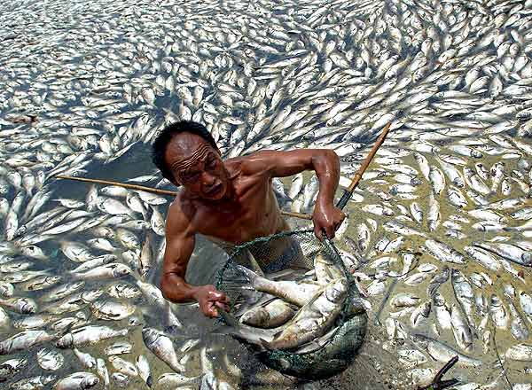 - Peces muertos en el lago uru uru ubicado en: Oruro-Bolivia.