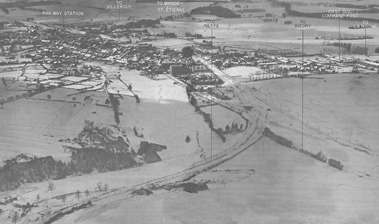 Repentinamente, alrededor de las 03:00 a.m. las primeras andanadas se estrellaron contra nuestras posiciones, unos pocos aviones alemanes zumbaron sobre cuartel general del regimiento y dejaron caer sus bombas. M inutos más tarde, llevando trajes de nieve, los primeros granaderos avanzaron a rastras hacia nuestras líneas, apoyados por unos cuantos tanques. La lucha en nuestro flanco izquierdo se intensificó. La Compañía "A" del 1er Batallón, recibió el embate del asalto. El enemigo estaba decidido a romper una brecha, pero la victoria no se conseguiría fácilmente. Champs y Hermoulle eran los objetivos, no cabe duda que era un ataque importante.