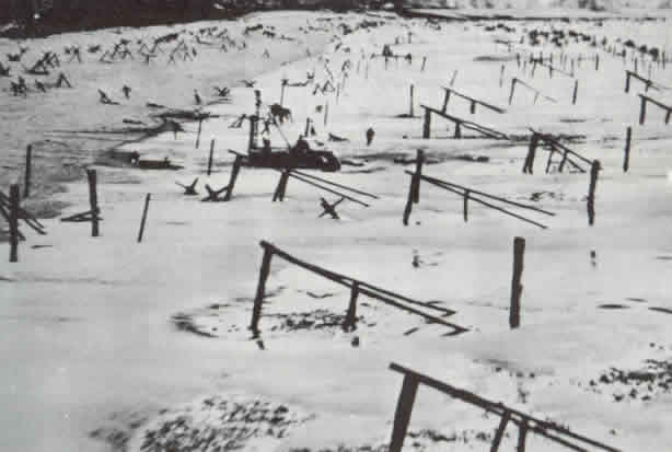 Defensas en las Playas llamadas “Erizos Checos”, que tenían el objetivo de destruir las lanchas y barcos de desembarco.