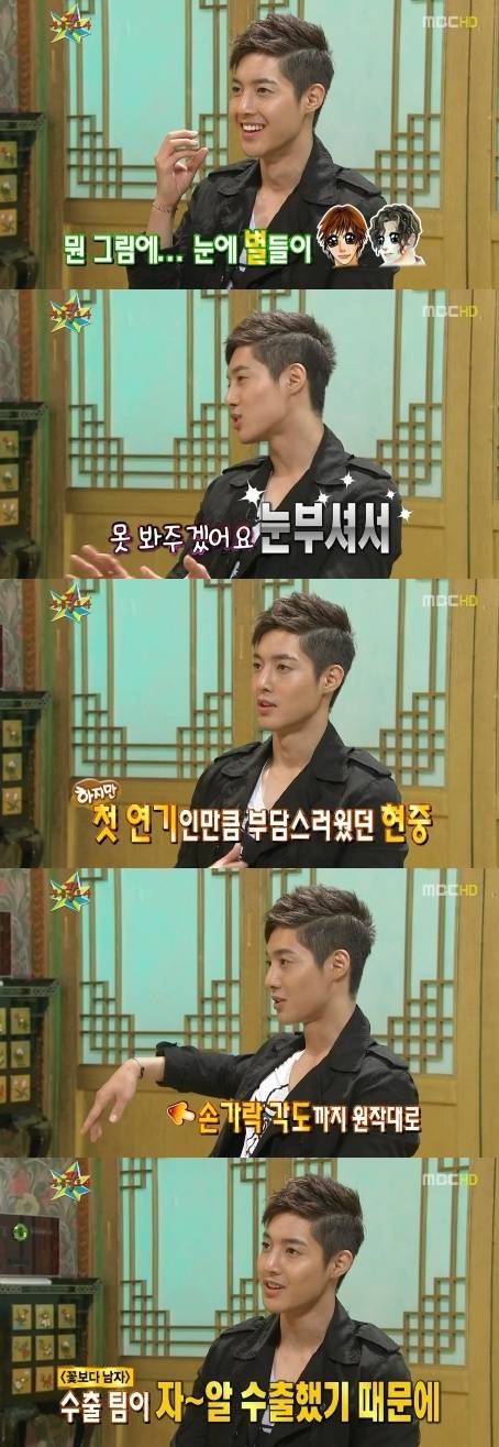 Kim Hyun Joong dijo "Cuando yo audicioné, me dijeron que era muy parecido, ya adentro tenía algunos temores porque nunca había actuado antes. Yo pensé que debería dar lo mejor de mi y comencé a leer el manga."