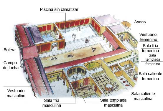 Los baños romanos cuentan con otro invento muy conocido: el retrete con agua corriente bajo el asiento que eliminaba los residuos. Los baños de pelucones se aromatizaban con inciensos, e incluso habían esclavos que calentaban el frio asiento de mármol para su usuario (adivina como).