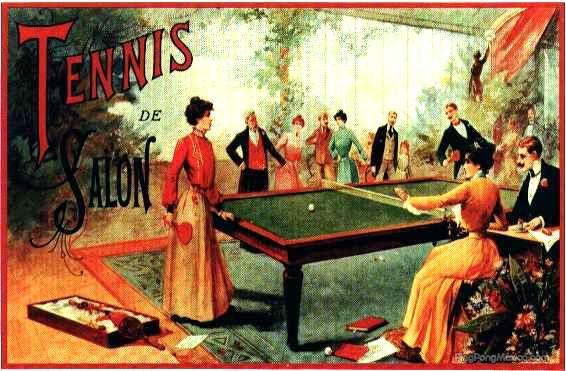 En 1870 éste deporte surge en Iglaterra como una descendencia del Tenis, es posible que los jugadores hayan desarrollado este juego a causa del clima que estaba en ese momento azotando la región, utilizando una mesa de comedor pequeña o una mesa de billar y dividiéndola en dos partes iguales con una cuerda o con libros; como bola, utilizaban pelotas de goma con las que los niños jugaban normalmente o incluso los tapones de corchos adaptados. Las raquetas serían las cajas de puros o botes infantiles. En 1884 la firma F. H. Ayres Ltd. ya comercializaba un juego de tenis de salón en miniatura. En julio de 1890, el industrial de Yorkshire David Forster, inscribe un juego de mesa para sala, el cual consistía únicamente en una mesa rodeada con una especie de valla para mantener la pelota dentro de unos límites. No existen evidencias de su distribución.